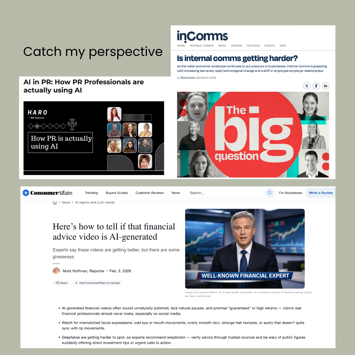 We help communications teams use AI effectively, by designing repeatable AI-assisted workflows for PR, internal comms, social, and marketing.