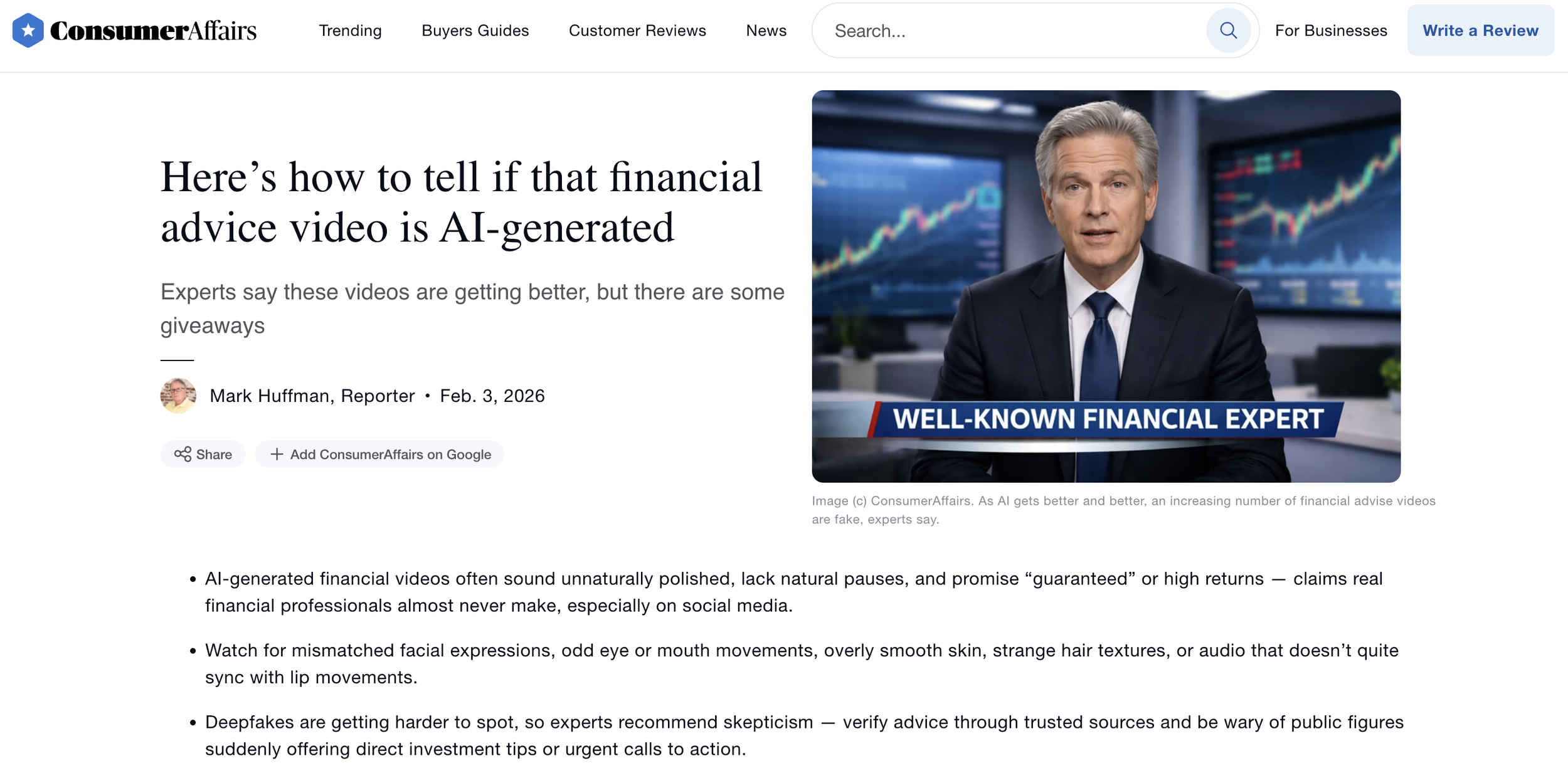 Our team actively monitors a network of trusted global news and consumer protection sources to identify patterns in emerging scams, not just headlines. We distill those insights into a focused, easy-to-read newsletter that prioritizes relevance over volume, helping readers quickly understand what’s changing and what actions to take.